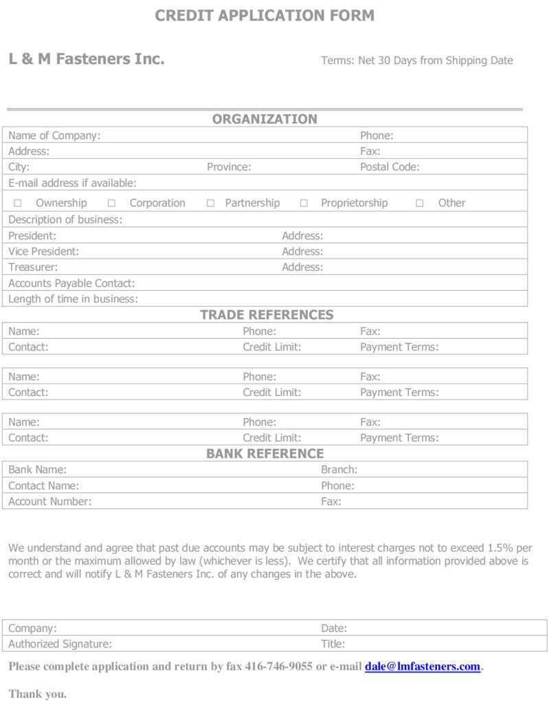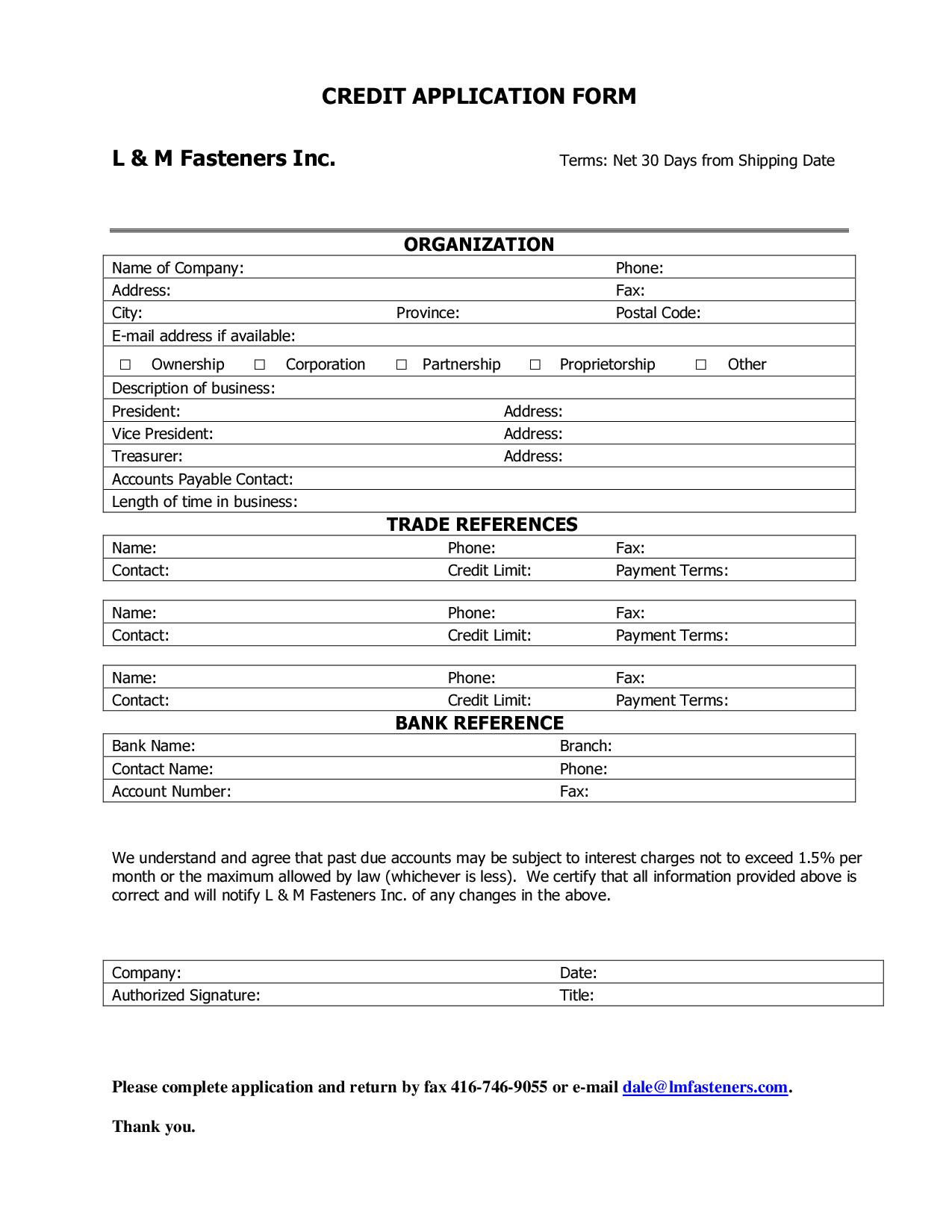 Download Credit Application Form in following formats:  Credit Application.pdf